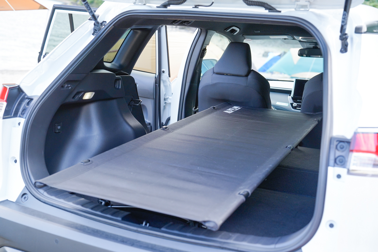 カローラクロスの車中泊、段差解消とフルフラット化の鍵はコットにあり!洪庵キャンプ場、テント泊と車中泊の快適さ対決!