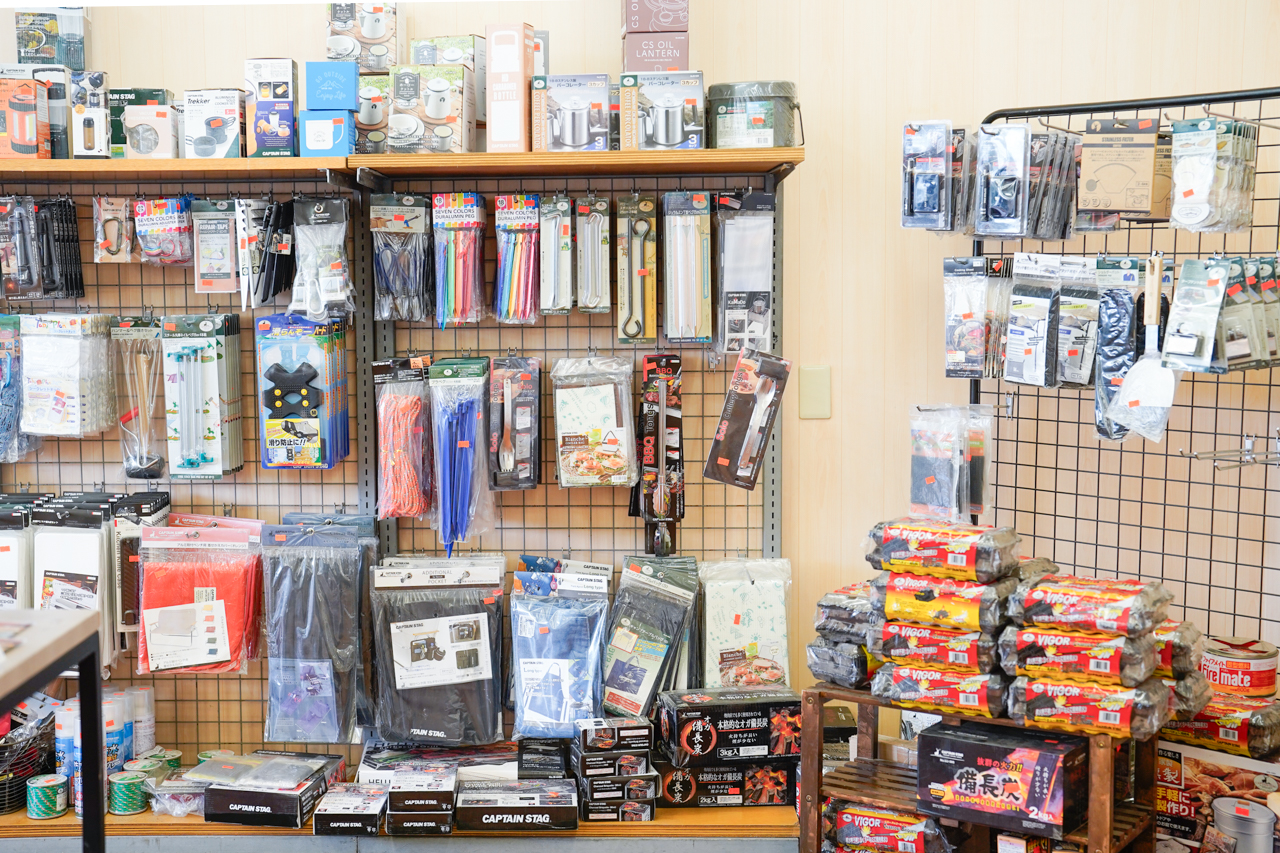 隣がPICAのキャンプ場なのもあってか、キャンプ関連商品の取り扱いは一番豊富でした。たいていの忘れ物はここで購入できる印象です。炭もありました。
